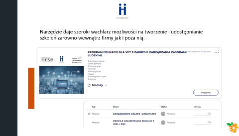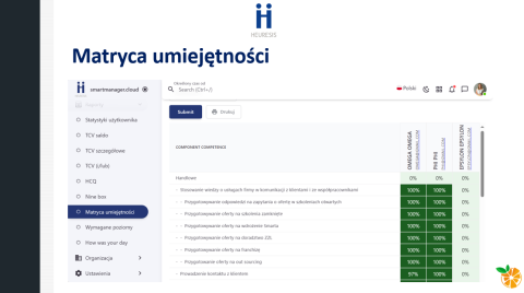 Unikalne połączenie zarządzania kompetencjami z systemem zadań powiązanych z rolami i kompetencjami, rozbudowana platforma e-learningowa, raporty HR i ESG w jednym środowisku oraz wsparcie kultury ciągłego rozwoju pracowników.